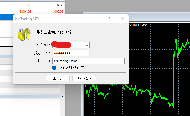 まずUSDJPY M1をダブルクリックでアクティブにする