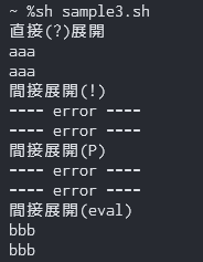 evalを使うとどのシェルでも間接展開に対応できてることが分かる.