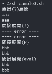 zshでのみ有効な間接展開